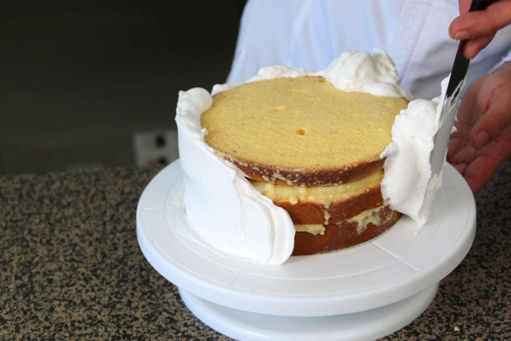 Para una torta de 18 cm de diámetro, la receta base considera un bizcocho de vainilla dividido en capas, humedecido con jarabe tres leches y relleno con crema pastelera, para luego ser cubierto con crema vegetal batida en punto chantilly, logrando una textura firme, aireada y estable, clave para un acabado profesional. El armado continúa con la incorporación de crema pastelera Delice, aplicada en las primeras capas junto al remojo Tres Leches Calda Delicia, generando un equilibrio entre humedad y cremosidad. Este último producto es, sin duda el protagonista, permitiendo mantener la identidad clásica de la preparación.
