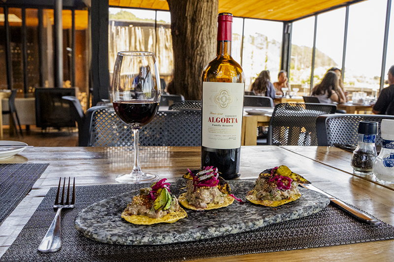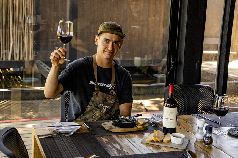 En esta oportunidad algunas de las creaciones hicieron match con 2 etiquetas de Algorta Wines, un vino que los ha visitado directamente desde el Valle de Rapel. Surazo invita a una experiencia única, donde se mezcla la aventura, el sabor y el relajo con un hermoso entorno natural y con