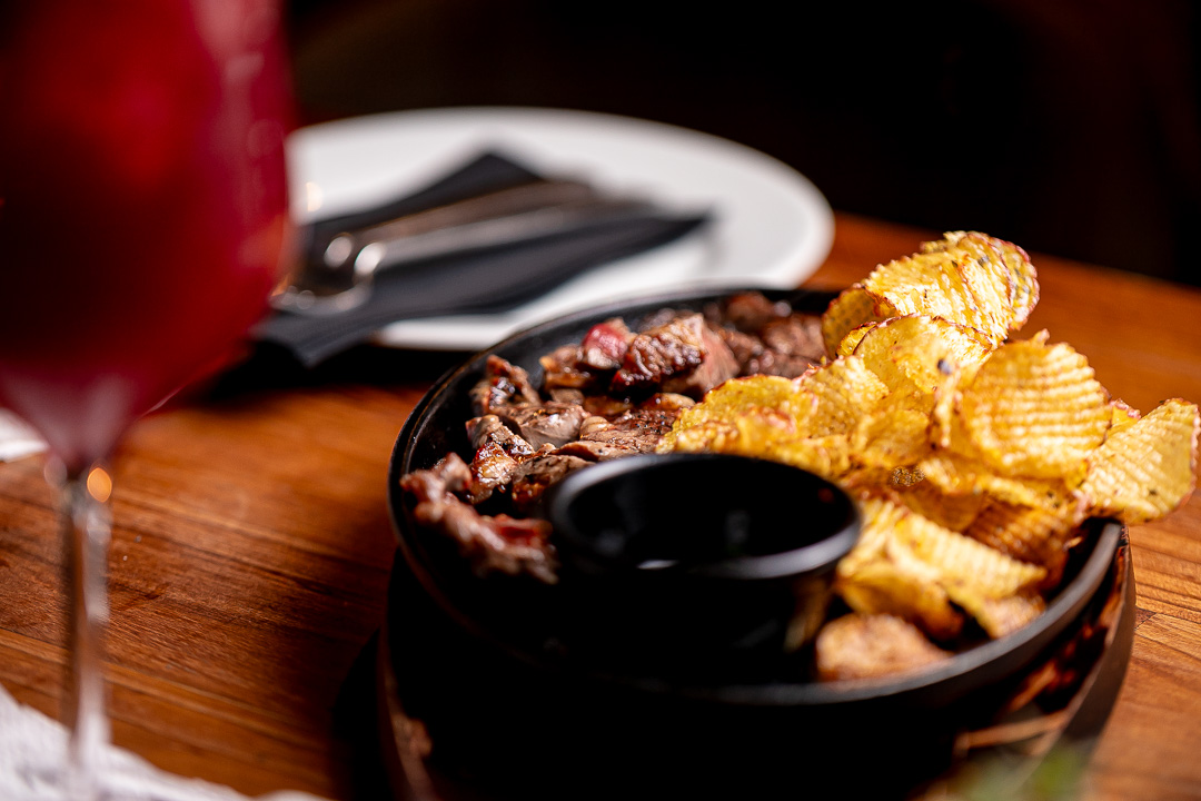 Katsu Sando estilo Backroom y el lomo vetado a la parrilla con chimichurri y papas waffle reafirmaron la versatilidad de la carta. Estos fueron acompañados por
