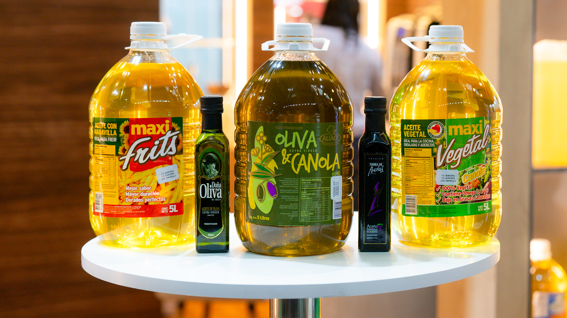 Aceite Fritura de Profundidad – Intensiva MaxiFrits, Aceite Vegetal, Aceite de Canola, Aceite de Oliva Extra Virgen, Blend Oliva Extra Virgen & Canola, sumando además a su portafolio Papas y Pickers (multimarca), Arroz, Azúcar, Legumbres y la variedad Kraft Heinz, entre otros.