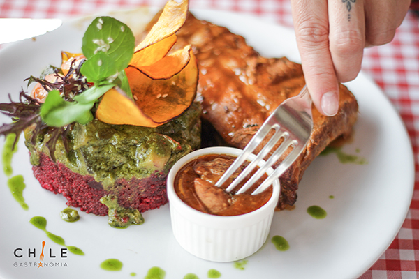 BBQ, acompañada de un cus cus de betarraga y para mi un asado de tira con pastelera de choclo dos platos abundantes y extremadamente sabrosos que acompañamos con un