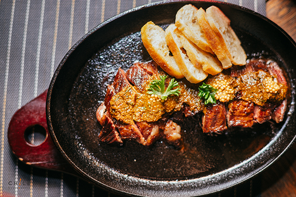 entrañas al hierro con chimichurri que, como buen clásico era imposible que fallara. Sencillo, a buena temperatura y a tiempo. Luego, probamos un excéntrico tártaro de banana con deliciosos toques agridulces,