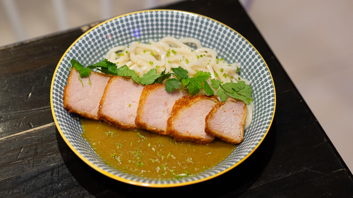 El Curry Katsu, es otro de los favoritos en el paladar local. Pequeños trozos de chanchito frito, acompañado de udon fresco y curry japonés. Una elaboración balanceada entre la proteína, los fideos y el curry. Totalmente recomendable.
