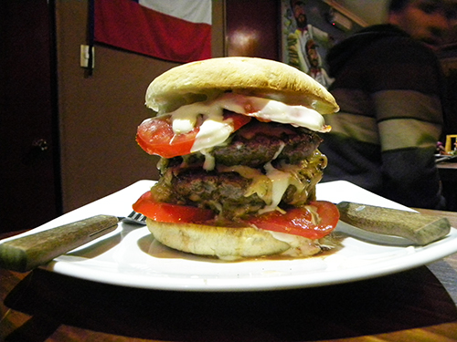 Asimismo, mi comensal tuvo la oportunidad de comer el "Compañero Allende", un churrasco de carne de res, con champiñones salteados, tocino y muuuucho queso. Realmente una maravilla en sándwich. Camila nos explicó que el nombre de este sándwich se debe a un cliente de 14 años, que se apellida Allende, y que siempre pide sándwich con ingredientes diferentes. Un día quisieron probar con una de sus invenciones y así resultó esta peculiar preparación, sin tintes políticos, para que no se atoren...