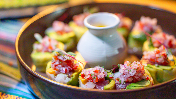 En cuanto a la carta de comida, el chef Dante ofreció una exquisita bandeja de sushi nikkei, con ingredientes nativos, raíces latinoamericanas y mucha técnica, con