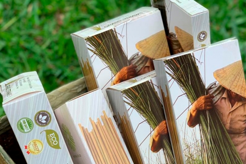 BUSCANDO UNA SOLUCIÓN al problema medio ambiental generado por las bombillas plásticas ,encontramos en un pueblo cercano a Ho Chi Minh, en Vietnam, el diseño de una BOMBILLA TOTALMENTE BIODEGRADABLE, cuya materia prima proviene de una hierba
