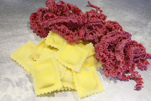 También elaboramos pasta fresca al huevo, de betarraga, de zanahoria, cúrcuma y de espinaca.