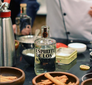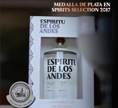 Espíritu de los Andes es un pisco 100% Moscatel, que reúne una fina selección de las mejores uvas Moscatel Rosada y Moscatel de Alejandría. Su delicado proceso de destilación comprende de dos partes, una altamente aromática y frutal que resalta todas las cualidades del “Espíritu” de las uvas Moscatel y una segunda parte doble destilada que le da el carácter y pureza ideal.