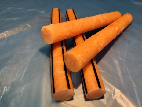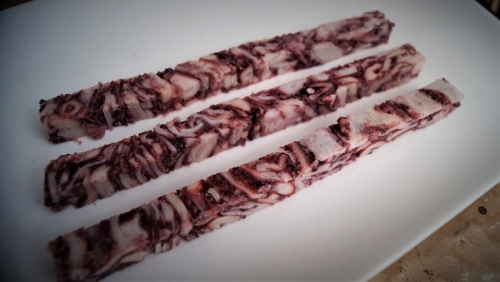 Elaborados con carne de salmón del Atlántico Premium (Salmo salar) y/o Pulpo fresco y cocido del sur (Enteroctopus megalocyathus) estas son ahumadas, cocidas, homogenizadas, preformadas, congeladas y empacadas en bolsas al vacío Sus calibres correspondientes a su peso unitarios son de 50,60,70 y 80 grs. y su vida útil es de 24 meses a partir de la fecha de elaboración.