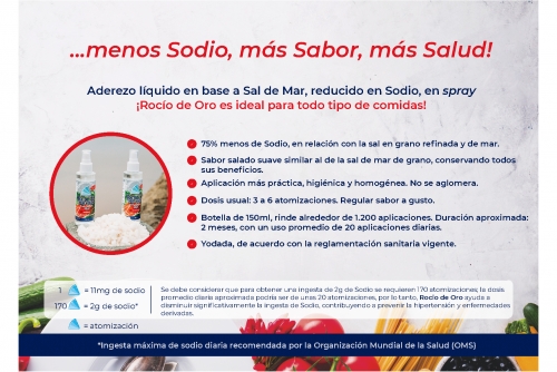 Es un producto nuevo y exclusivo en el mercado nacional, que corresponde a un aderezo líquido en base a Sal de Mar de Cáhuil, reducido en Sodio, con una innovadora y práctica forma de dosificación por atomización (spray).