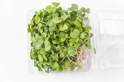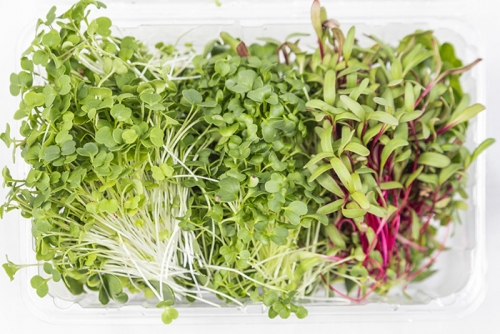 microgreens, más bien conocidos como brotes. Corresponden a plantas jóvenes cosechadas en sus primeras fases de crecimiento, cuando los cotiledones están completamente desarrollados.