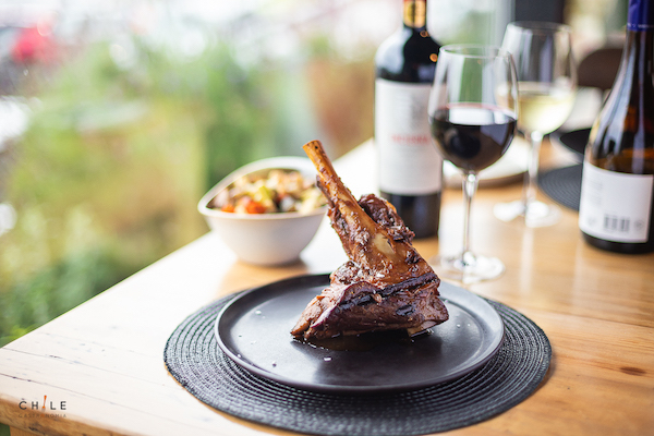 Garrón Trasero cocinado muuuuy lento, acompañado de verduras de temporada cocinadas al carbón. Un match imperdible con esa carne extra suave y sabrosa que fue maridada con un