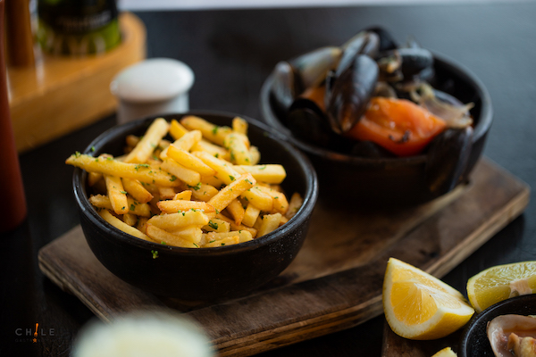 Pisco Sour. Y Mejillones a la provenzal con unas fritas, como les dicen ahí. Cada preparación en su punto, los