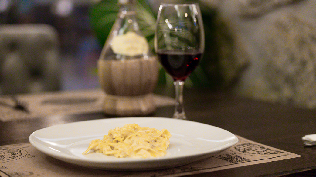 - Cuarto tiempo: fettuccine hechos en casa a la rueda de parmigiano reggiano maridaje Chianti In Fiasco de Gourmitalia y bonus track ensamblaje Viña Ancora,
