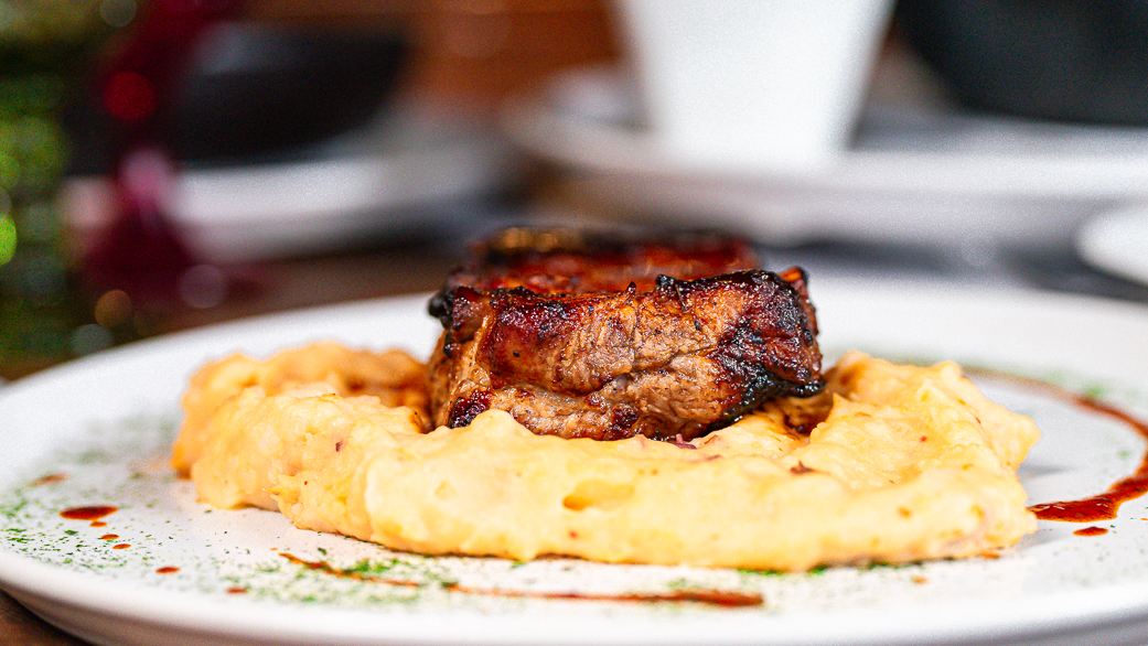 filete costero a la parrilla y ñoquis, salsa de camarón y queso parmesano. Luego pasamos a un pollo al coñac tradicional con papas carré cortadas en cantempiere con su típico caldo, para terminar con un costillar con puré picante y un exquisito salmón cancato (el mejor postor).