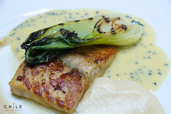 esturión, en el cual el chef Rudi se ha especializado. Confitado con puré de coliflor, pak choi grillado y salsa de champagne es un plato que hay que probar. Y claro, está el caviar cosechado por el mismo chef en nuestro país, que está presente dentro del menú en más de un plato.