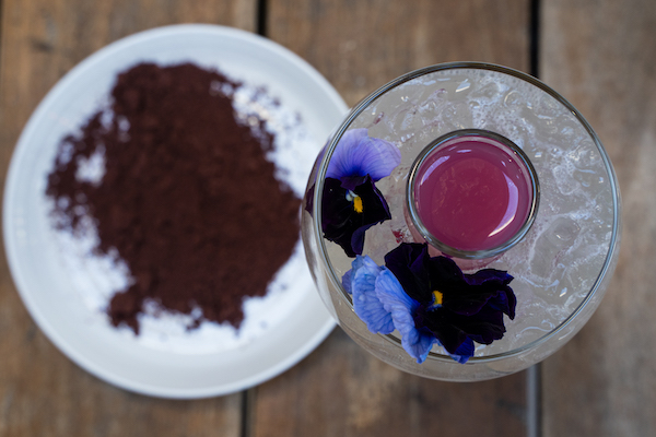 Nuestra primera parada fue la barra de Buteco, donde invitamos a su bartender Enderson Castellano, quién nos preparó 4 cócteles con 2 productos invitados: Delavid, polvo de vino y Agua Noble, con notas a madera. Los cócteles que destacamos fueron “Mojito Noble” con Jack Daniels, maracuyá, mango, albahaca, limón, goma y Agua Noble, además de “Destello Carmesí” con gin Bombay, triple sec, limón, goma y Delavid.