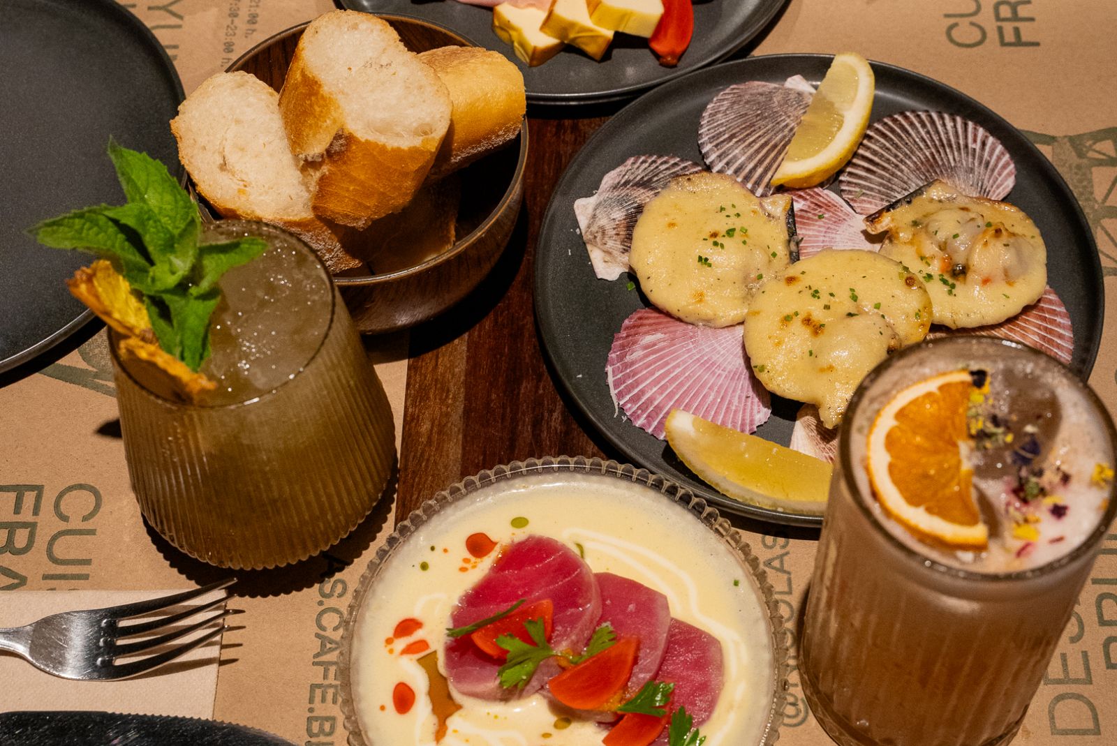 A esto se suma una nueva carta que dialoga con la tradición francesa desde una mirada contemporánea: tartar de res, ostiones gratinados, ostras, croquetas de mariscos, selección de quesos y atún mi-cuit; junto a platos de fondo como cordero braseado, boeuf bourguignon, risotto de la semana y guarniciones pensadas para acompañar y equilibrar cada preparación.