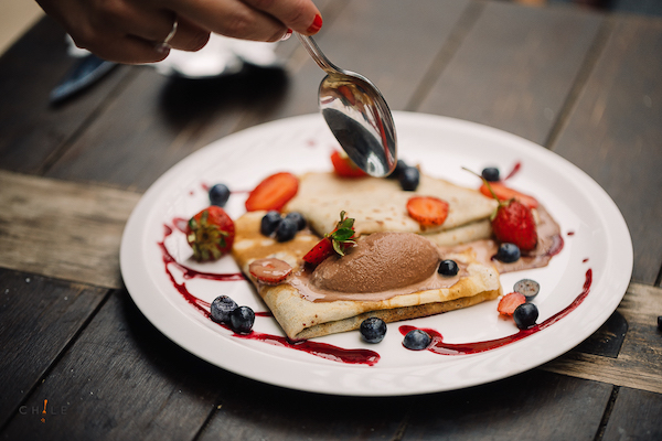 dulce de leche con nutella, acompañado de helado de vainilla y chocolate. Perfecto para cerrar un día nublado en la playa mirando la danza del mar.