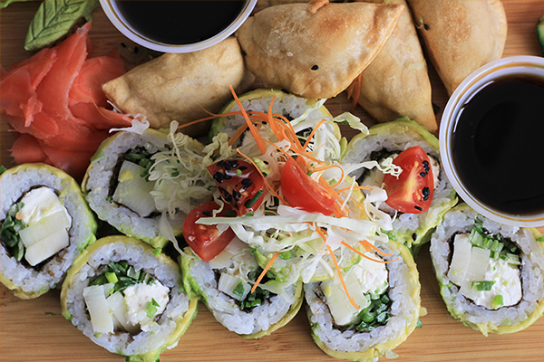 Salmón -Gyosas de Verduras -112) Veggie Avocado Palmito-Cebollín-Queso Crema Envuelto en Palta - (24) Avocado Sake - Salmón- Queso Crema- Ciboulett -105) Super Sake Hot -