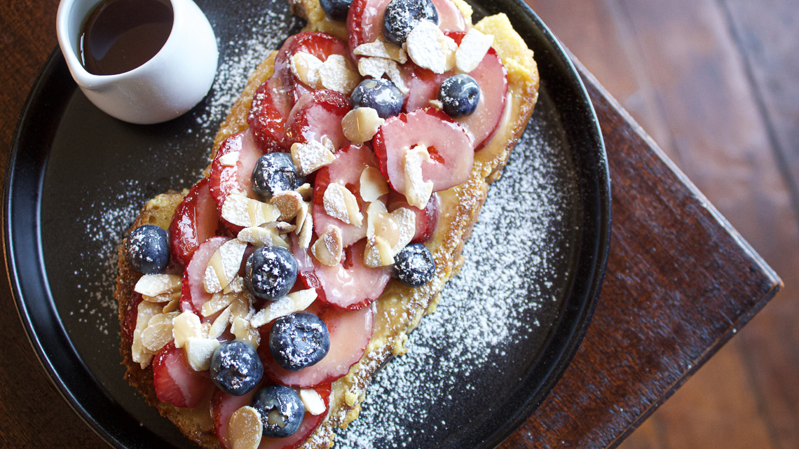 De postre, sus irresistibles tostis francesas, con frutos rojos o plátano y syrup de vermut.